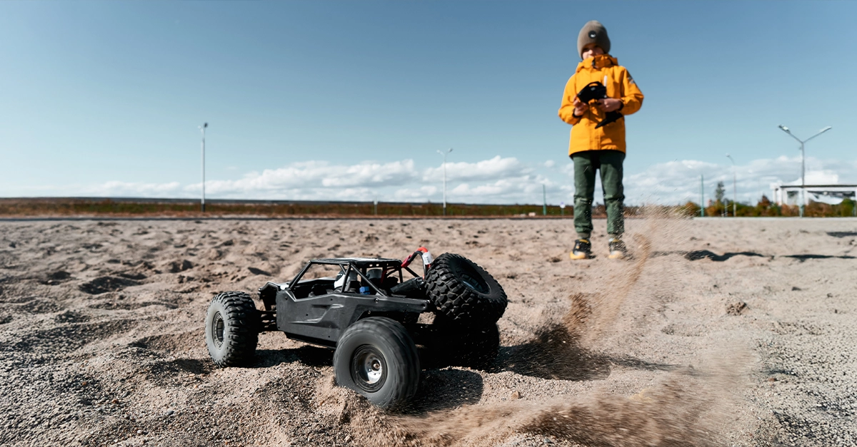 عِش الإثارة في منطقة سباقات التحكّم عن بُعد وأشعل الأدرينالين! تحدَّ أصدقاءك في سباقاتٍ مشوّقةٍ بسياراتٍ سريعةٍ وحلبةٍ رمليةٍ مليئةٍ بالمفاجآت.