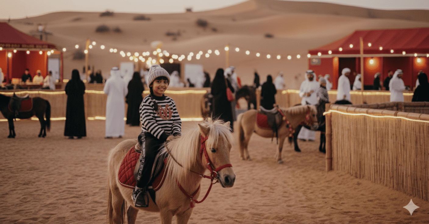 A charming new addition to the Petting Zoo, saddle up for a gentle trot across Liwa’s sands. A timeless activity that blends the region’s equestrian heritage with unforgettable childhood joy.